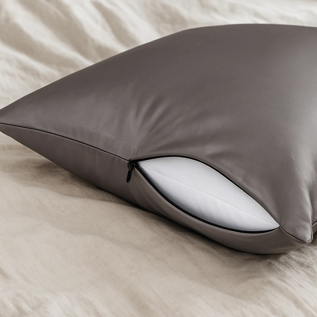 Dankzij de onzichtbare ritssluiting blijft de kussensloop perfect op zijn plek zonder te verschuiven. Het tijdloze ontwerp met subtiele glans brengt een vleugje luxe in elke slaapkamer, terwijl je huid en haar profiteren van de natuurlijke verzorging van zijde.